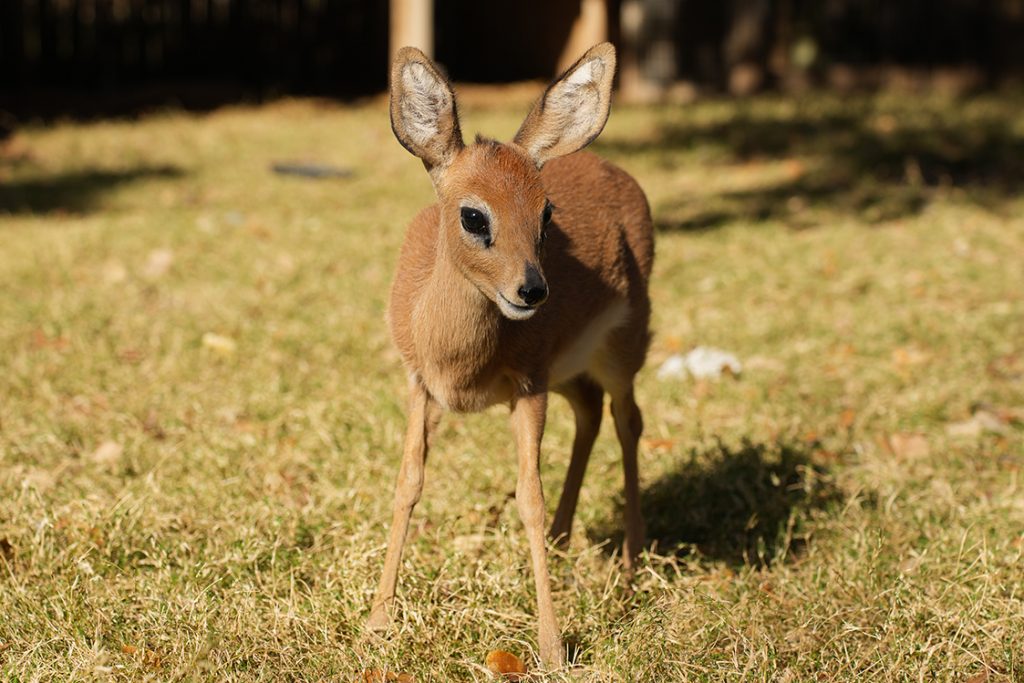 Amani is three months old and lives in the Terrace with her parents, Kira and Kidogo, near the giraffes. She is a total foodie; her favorite food is sweet potato. Steenboks are one of the smallest antelope species in Africa. Even though they are very common in Africa, only two AZA-accredited zoos have steenboks in the USA — Disney’s Animal Kingdom and Abilene Zoo! Guests can now meet Amani up-close by booking a steenbok tour.